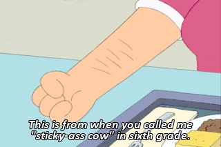 This is from when you called me "sticky-ass cow" in sixth grade.