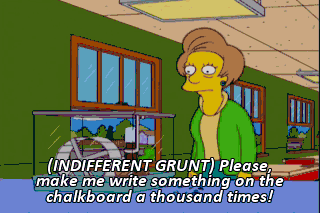 (INDIFFERENT GRUNT) Please, make me write something on the chalkboard a thousand times!