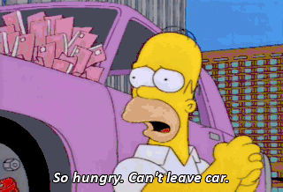 So hungry. Can't leave car. Getting closer. Closer. Almost there. It's-- Ow!