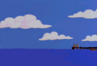 Yeah! I'm not gonna let those guys hog all the respect... while I'm out here on some stinkin' tub. That's just what those eggheads want. Well, forget it, poindexter, 'cause Krusty's back in town! Yea!
