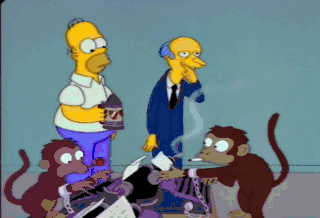 Let's see. "It was the best of times, it was the 'blurst' of times"? You stupid monkey! Oh, shut up. And this is my basement. Gee, it's not as nice as the other rooms.