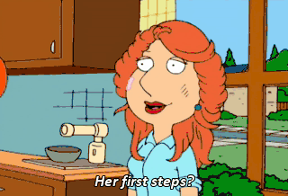Her first steps? Yeah. What the hell are you doing in here anyway? All right! Her first drum solo. Well, Thanks to Cheesie Charlie I'm not gonna miss a moment of Stewie's party.