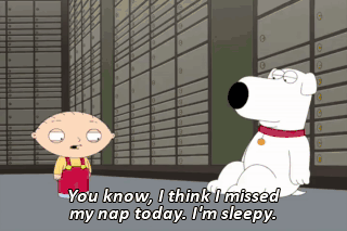 You know, I think I missed my nap today. I'm sleepy. Well, why don't you lie down? I think I will. (SIGHS) Brian? What? I just realized something. What? Tomorrow's Sunday. Fuck.