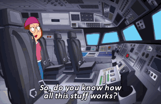 So, do you know how all this stuff works? Well, I don't know what most of these buttons do, but I know this big red one is the one you press to launch. Ooh! Big red button! (BEEPING) Stewie, no!