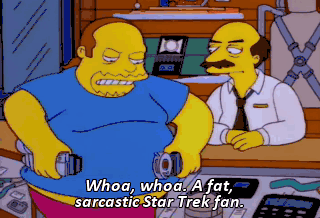 Whoa, whoa. A fat, sarcastic Star Trek fan. You must be a devil with the ladies.