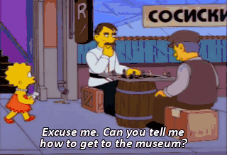 Excuse me. Can you tell me how to get to the museum? Hmm.