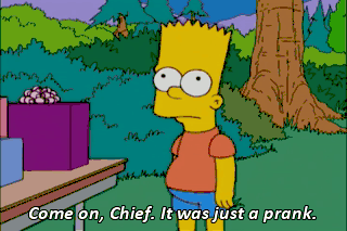 Come on, Chief. It was just a prank. Would some flatware make things right? Um, what does it say on my badge? (READING)
