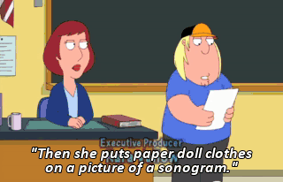 "Then she puts paper doll clothes on a picture of a sonogram."