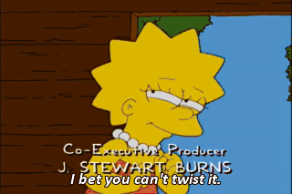 I bet you can't twist it. Of course I can twist it. I'm great. (BART SCREAMING) This is my last baby tooth.