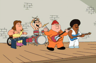 Oh, my God, we don't know any songs. You suck! Get off the stage! What do we do? I know what I'm doing. I'm getting out of here. How about a funny story about Lake Wobegone?