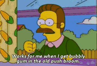 - Works for me when I get bubbly gum in the old push broom. - That sounds okay. Aaah! Aaah! - Stop! Stop! - Hmm. I seem to have mashed more hair into it. Oh, well.