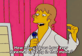 How many of you have ever dreamed of being in that movie? Me! Me! Me! Well, you're in luck 'cause we're gonna act out a scene, and I'll need a volunteer to play Obi-Wan. Kenobi? Over here! Here!