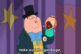 (HIGH-PITCHED VOICE) Make me dinner, and go rent Twilight,