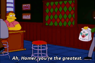 Ah, Homer, you're the greatest. - Hey! Lenny! - Sorry. Sorry. For what? A little splattered food never hurt anybody. Now everybody shut up and dance!