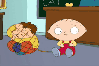 Stewie, what have you done? That's not the way we play. You sit here, Brad. Stewie's It. Ooh! Aren't you the one in charge? Let's see now. Duck, duck, duck,