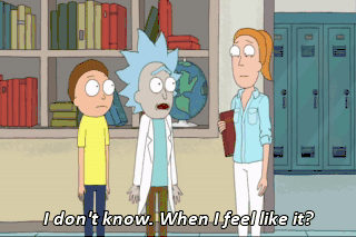 I don't know. When I feel like it? Damn, girl! You need to chill out! This whole thing was your idea, in the first place,