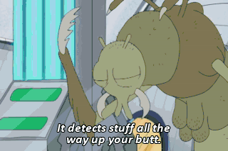 It detects stuff all the way up your butt. Run, Marty! Run! Aah! Red alert! Ohhhhh!