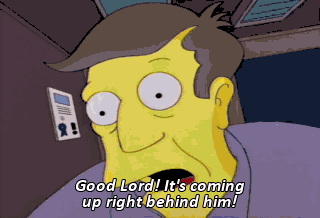 Good Lord! It's coming up right behind him! What the-- No! No! Ow! Ow! Stop it!