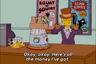 Not so fast. I also want some dribble glasses, fake boobs, two of Bart's T-shirts and that rapping toilet seat.