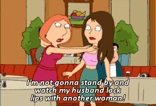 I'm not gonna stand by and watch my husband lock lips with another woman!
