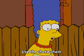 Use the choke chain. Fine! I want you to sit there, look through the window...