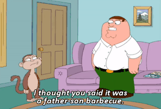 I thought you said it was a father-son barbecue. Yeah. But it was up in Monkeykid. (SHOUTING) What?