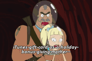 iTunes-gift-card-as-a-holiday- bonus-giving mother-- Come on! Aah! Get off! You guys! It's gonna burst! Go! Go, go, go!