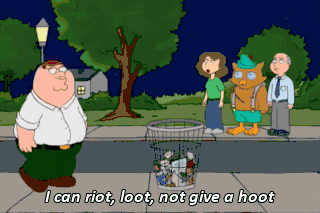 I can riot, loot, not give a hoot and touch your sister's teat Can't touch me