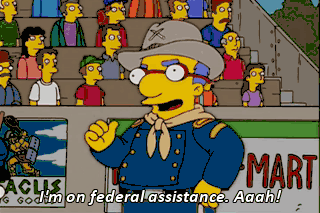I'm on federal assistance. Aaah! You lay off my girlfriend's ex-husband. Geez. I don't remember this much bad blood when I was a Cavalry Kid.