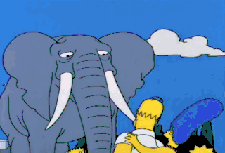 Homer? It looks like it could gore. It does look like Al Gore. Oh, he smells worse than anything. Hey, you, elephant! Lift me up on your back, man. Whoo! Bart! Cool!