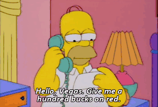 Hello, Vegas. Give me a hundred bucks on red. D'oh! All right. I'll send you a check.