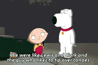 We were like Lewis and Clark and the guy who likes to tip over canoes. (GRUNTS) These rapids are treacherous. We should reach calmer waters by nightfall. Uh-oh, earthquake! - Hey, come on! - Careful!