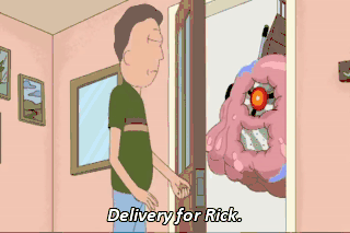 Delivery for Rick. Morning, Summer, Beth, and Jerry. Gross. What is that thing? It's a courier flap.
