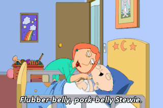 Flubber-belly, pork-belly Stewie. (BLOWS RASPBERRY)