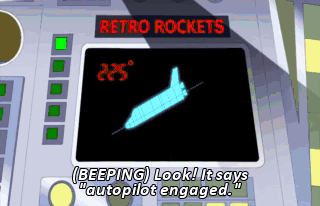 (BEEPING) Look! It says "autopilot engaged." Good for him. I'm glad he found someone.