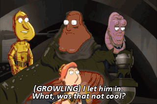 (GROWLING) I let him in. What, was that not cool? Nice to see you, Jabba. (IN ALIEN LANGUAGE) (AUDIENCE LAUGHING)