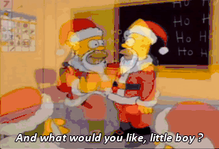 And what would you like, little boy ? You're not really Santa, tubby. Why, you little egghead !