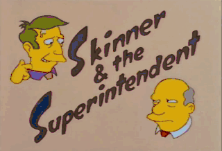 Skinner with his crazy explanations The superintendent's gonna need his medication When he hears Skinner's lame exaggerations There'll be trouble in town tonight Seymour!