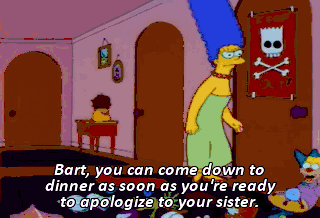 Bart, you can come down to dinner as soon as you're ready to apologize to your sister.