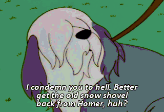 I condemn you to hell. Better get the old snow shovel back from Homer, huh?