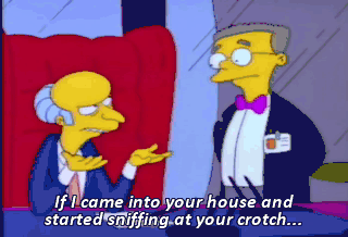 If I came into your house and started sniffing at your crotch... and slobbering all over your face, what would you say? Mmm. If you did it, sir?