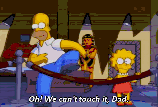 Oh! We can't touch it, Dad. It's behind a velvet rope. A velvet rope. Lisa, you can't go this far and then not go further.