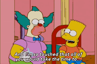 And I'm so touched that all of you would take the time to... Eat my shorts, lame-os! (CHUCKLES) Oh! (STRAINING) Help! Kidnappers! They're not kidnappers.