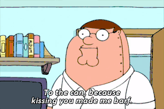 To the can, because kissing you made me barf.