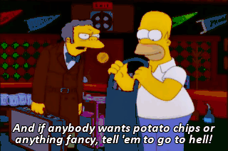 And if anybody wants potato chips or anything fancy, tell 'em to go to hell!
