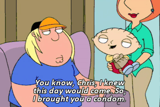 You know, Chris, I knew this day would come. So, I brought you a condom.
