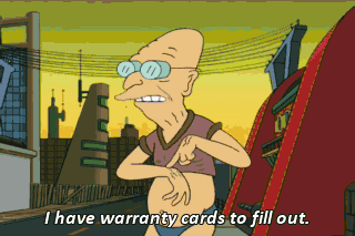 I have warranty cards to fill out. I am not just making excuses. All right! I'll go! I can't believe it!