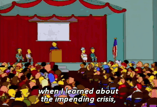 when I learned about the impending crisis, I caught the very next plane to Springfeld... field.