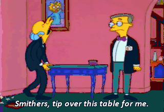- Smithers, tip over this table for me.