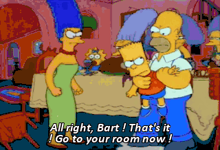 All right, Bart ! That's it ! Go to your room now ! Okay. I'll take some white meat and stuffing to go, and send up the pumpkin pie in about 20 minutes.
